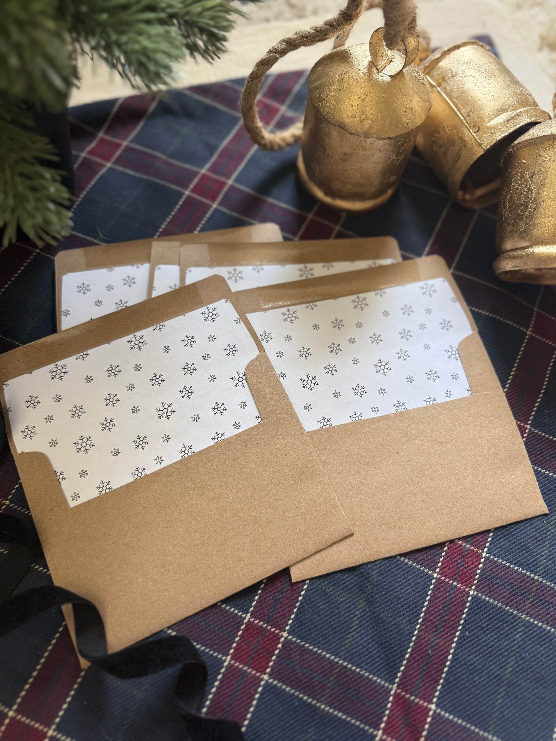 Snowflake Envelope Liners with A2 Kraft Envelopes – Winter Lined Envelopes