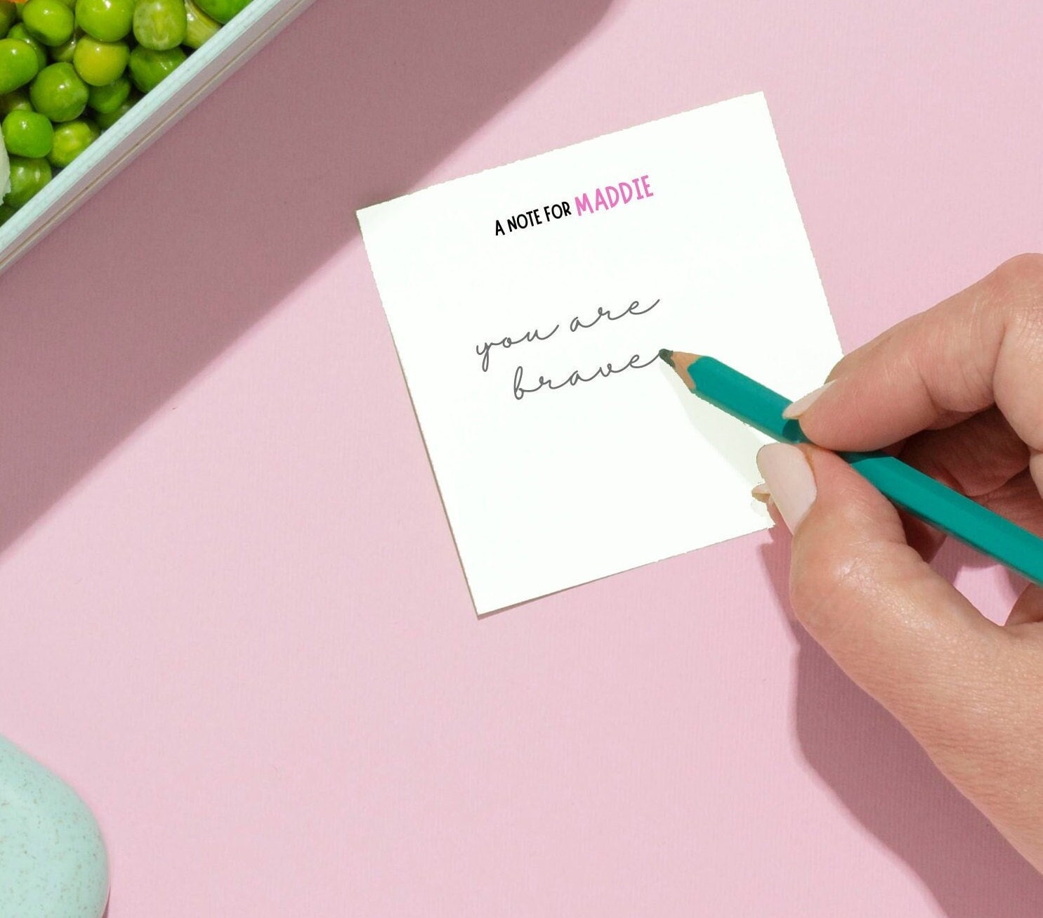Each 3.5" x 3.5" custom notepad features "A note for <insert child's name>" at the top, making your little one feel extra special. Whether it's a sweet message in their lunchbox, or a reminder at home, these notes are perfect for spreading smiles and encouragement.